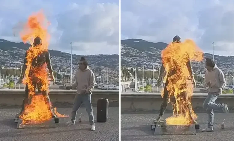 شهدت جزيرة ماديرا البرتغالية حادثة غريبة أثارت ضجة على مواقع التواصل الاجتماعي، بعدما أقدم شاب على إضرام النار في تمثال النجم البرتغالي كريستيانو رونالدو، الواقع أمام متجر CR7 ومتحفه في مدينة فونشال، مسقط رأس اللاعب.