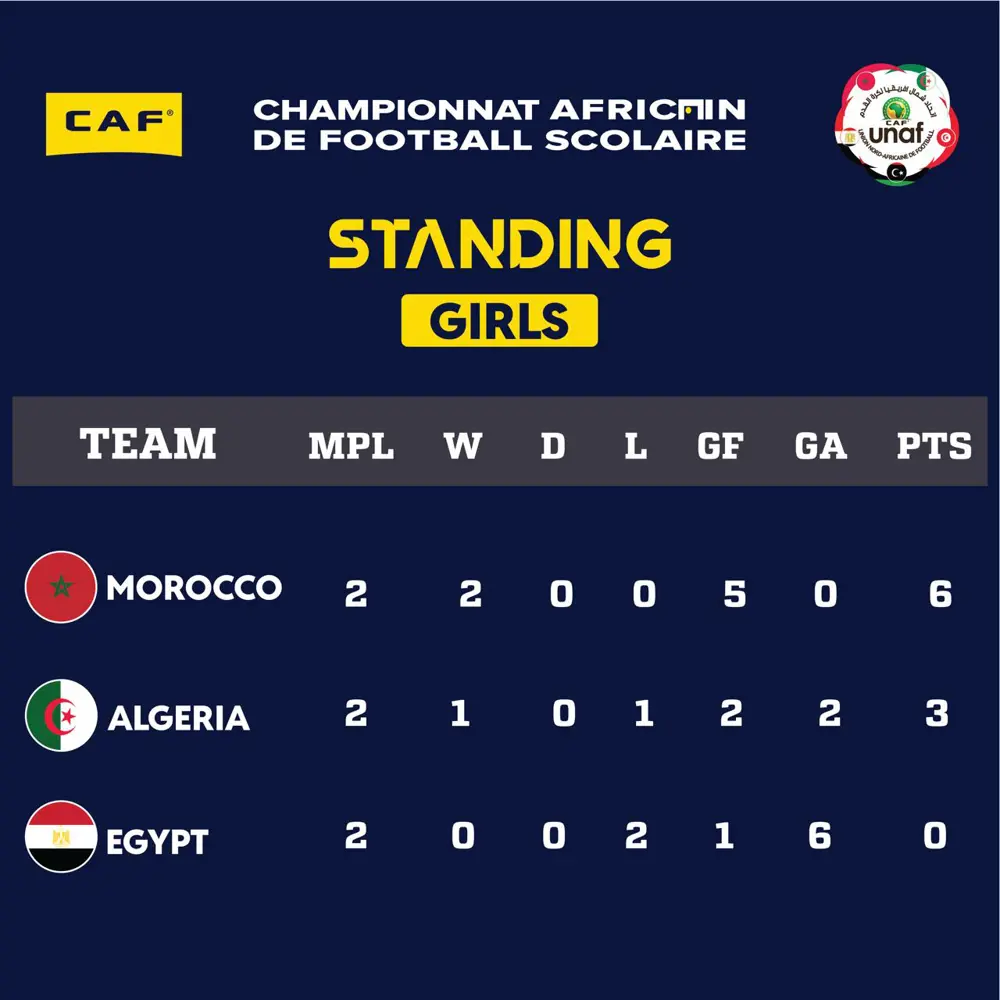 أما في فئة الإناث تحت 15 سنة، فقد قدمت اللاعبات المغربيات أداءً مميزًا، بانتصار 1-0 على الجزائر في المباراة الافتتاحية، قبل أن يحققن فوزًا كبيرًا 4-0 على مصر ليحسمن اللقب والتأهل إلى النهائيات.